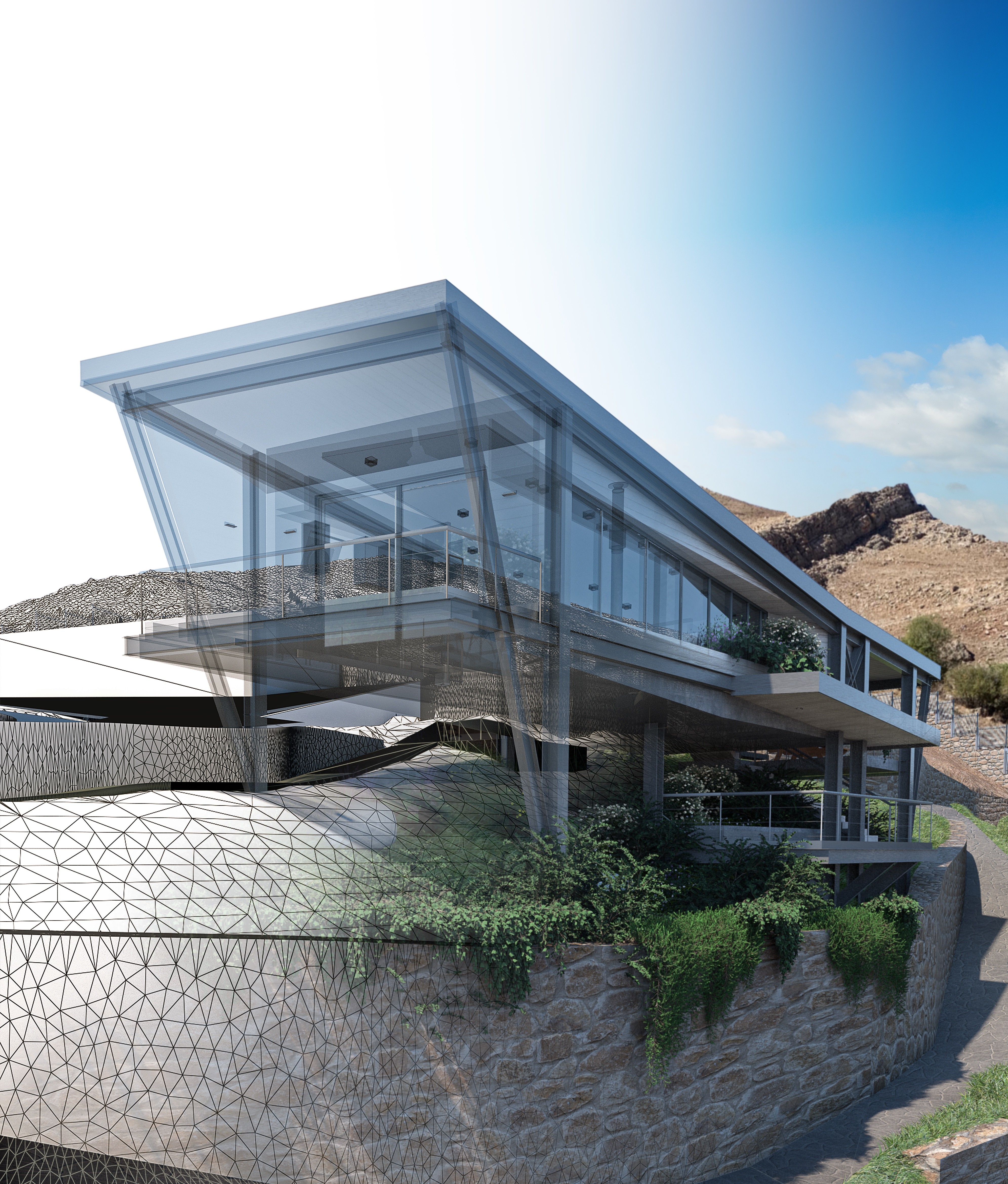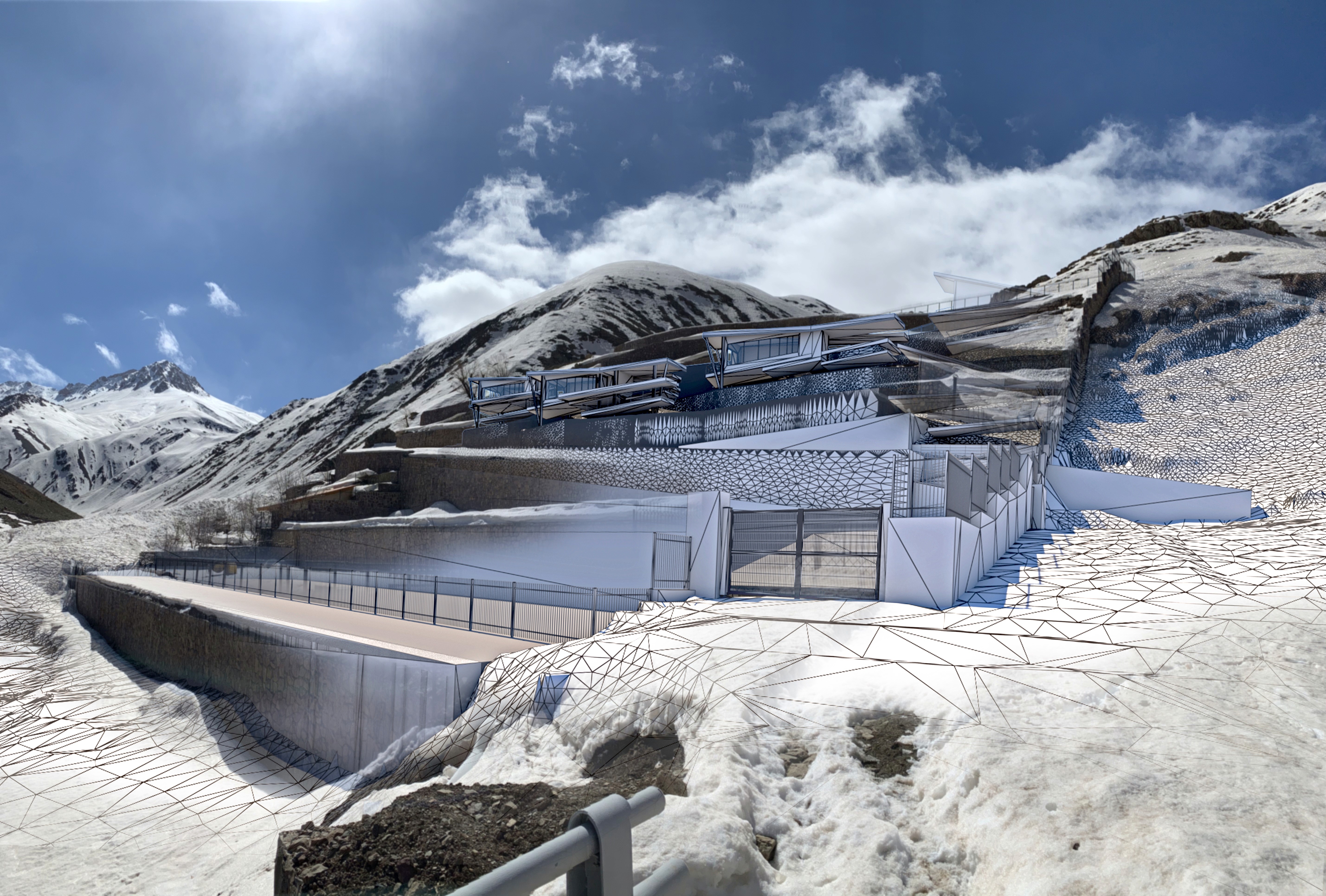 Accordingly, the concept of the form reflects this idea by creating an eastward spatial and visual flow, thus transforming the end into the beyond. This language is further reinforced by mass relaying through void in which the void has theoretically been shaped and characterized by the surfaces that have opened up towards the east.